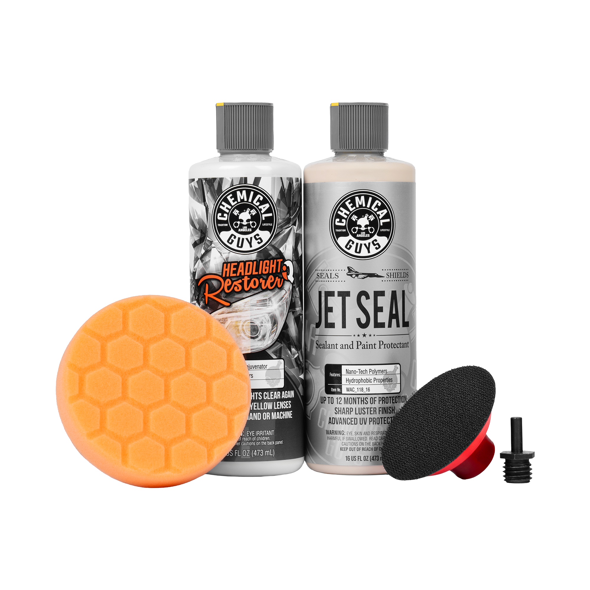 Effectively restores hazy headlights to a clear condition, maximizing visibility.Seals & protects headlights for up to one year, repelling UV rays, pollution, & contamination.Attaches to any standard drill for polishing to remove light to moderate defects.